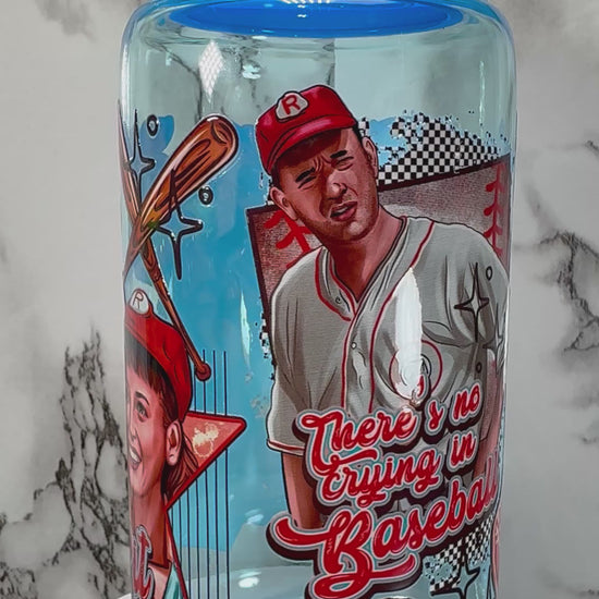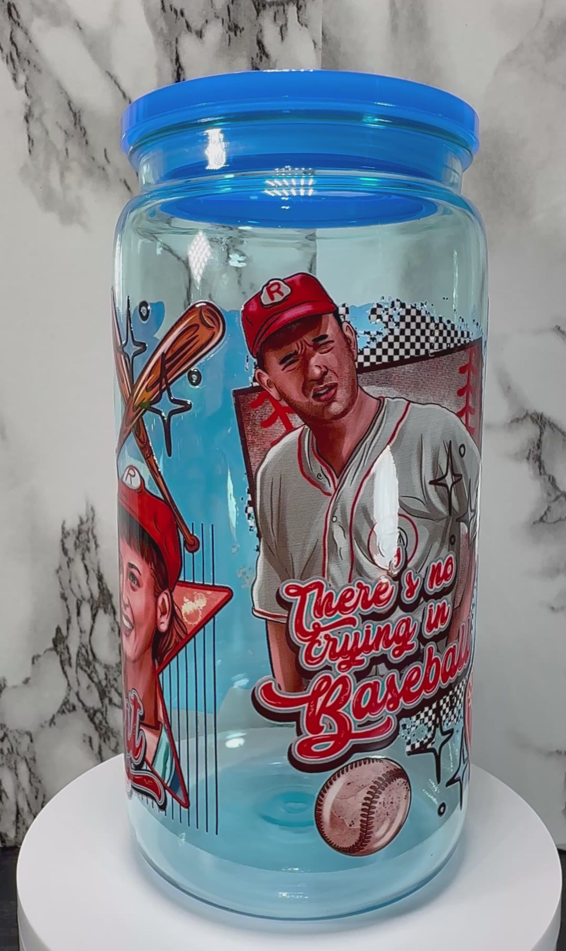A League of Their Own UVDTF on a blue PLASTIC beer can cup
