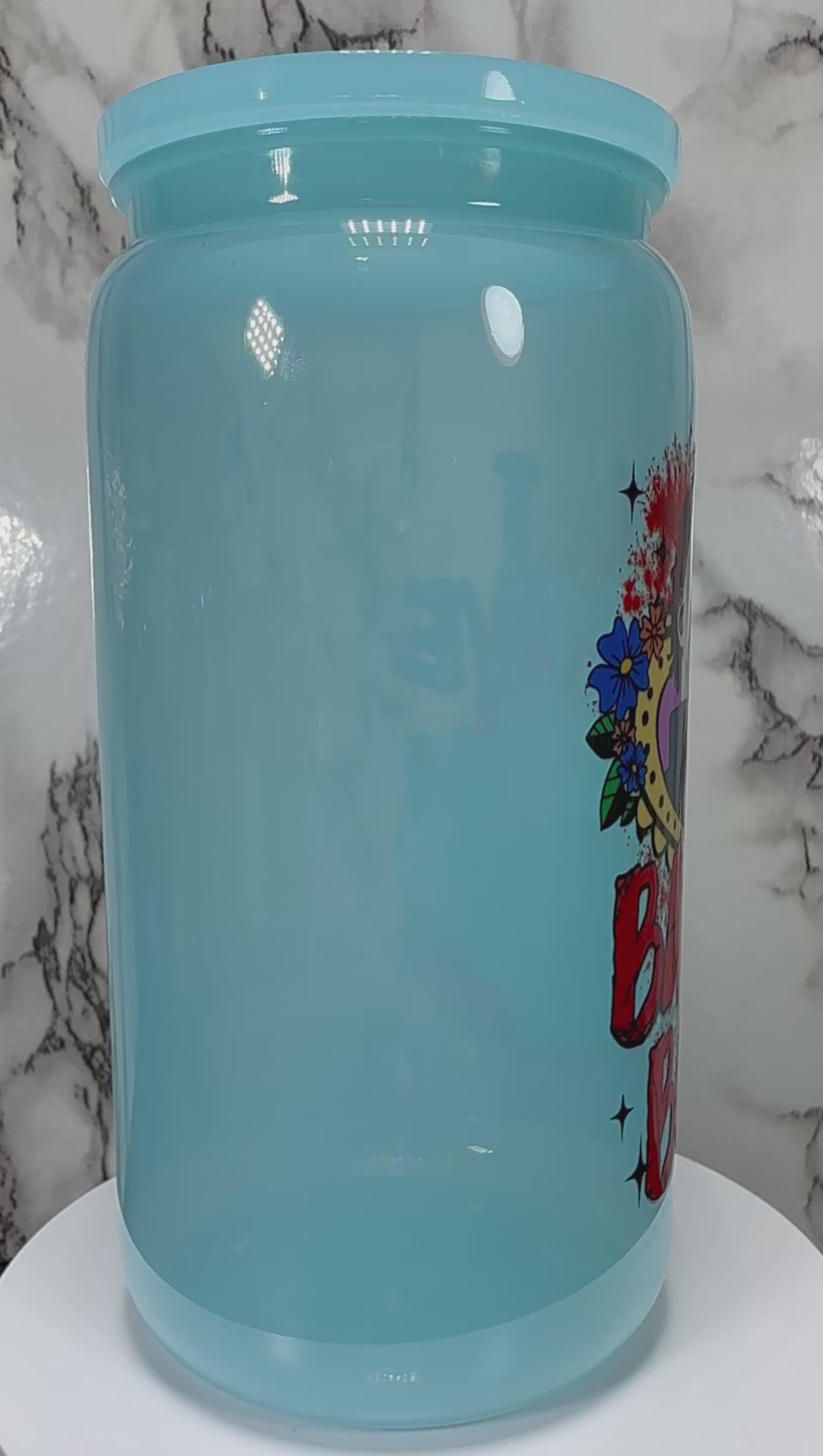 Bad Boys UVDTF on a PLASTIC blue beer can cup