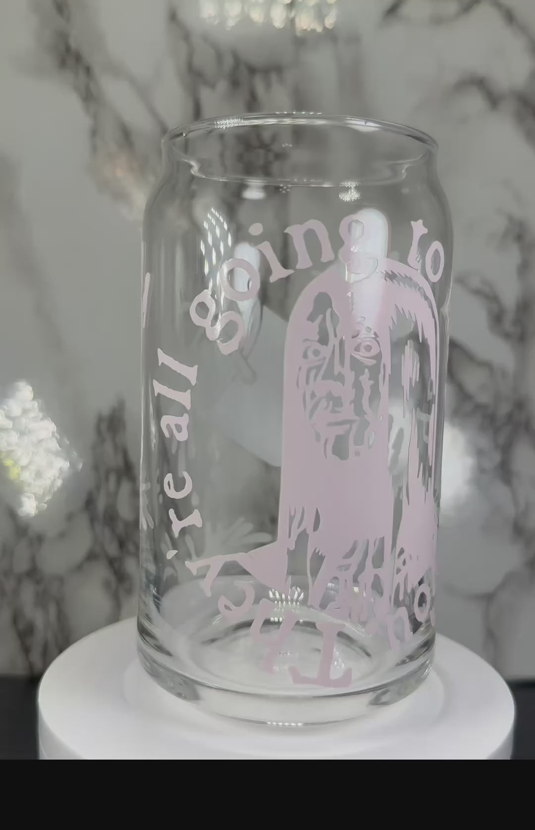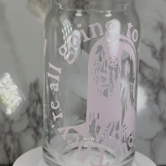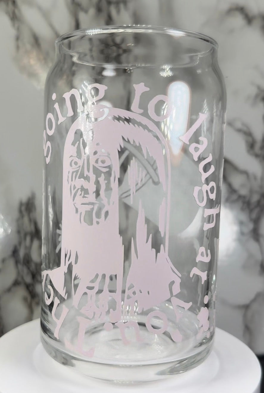 Carrie White color changing red permanent vinyl on a libbey beer can glass