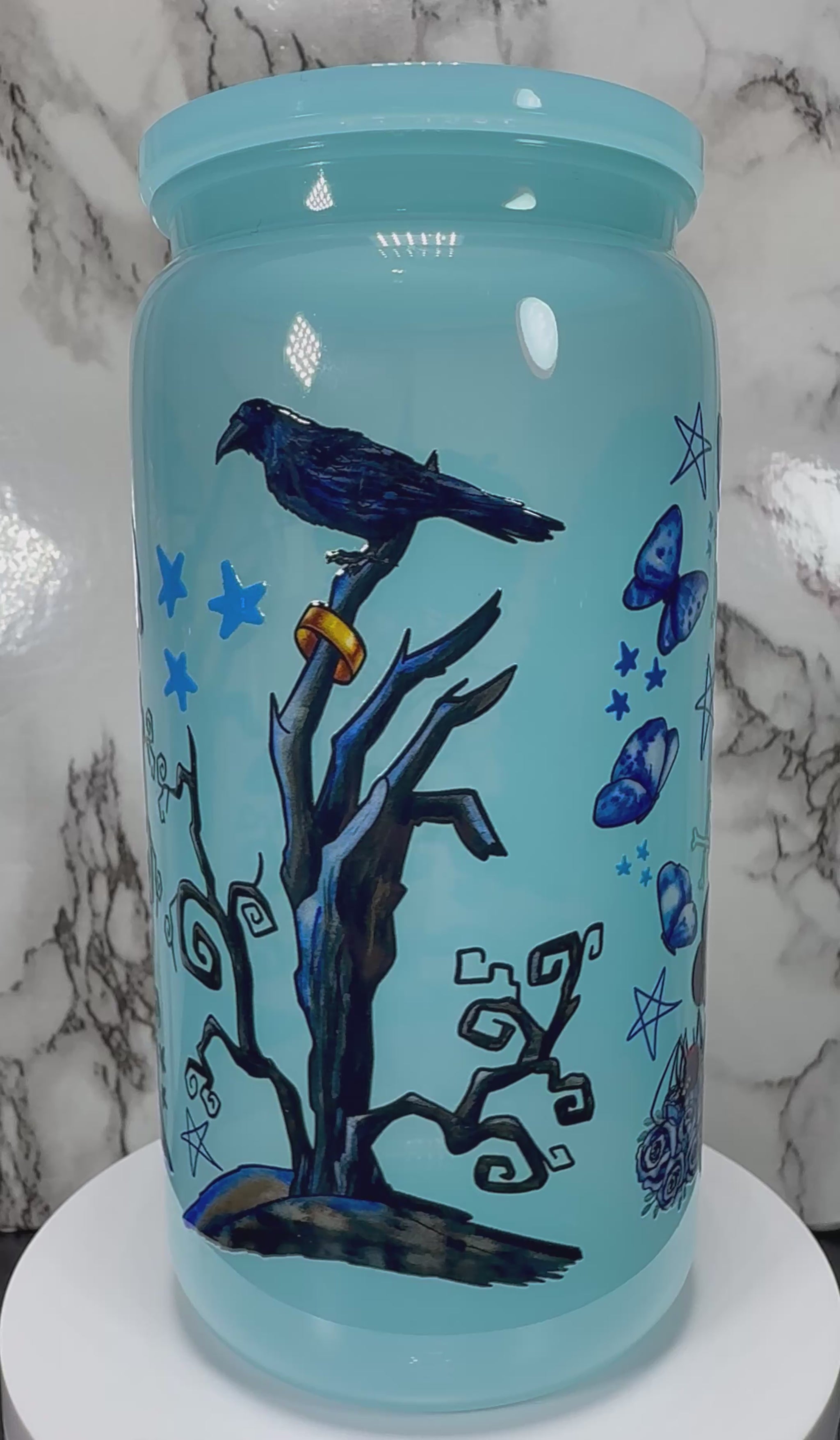 Corpse Bride UVDTF on a PLASTIC beer can cup