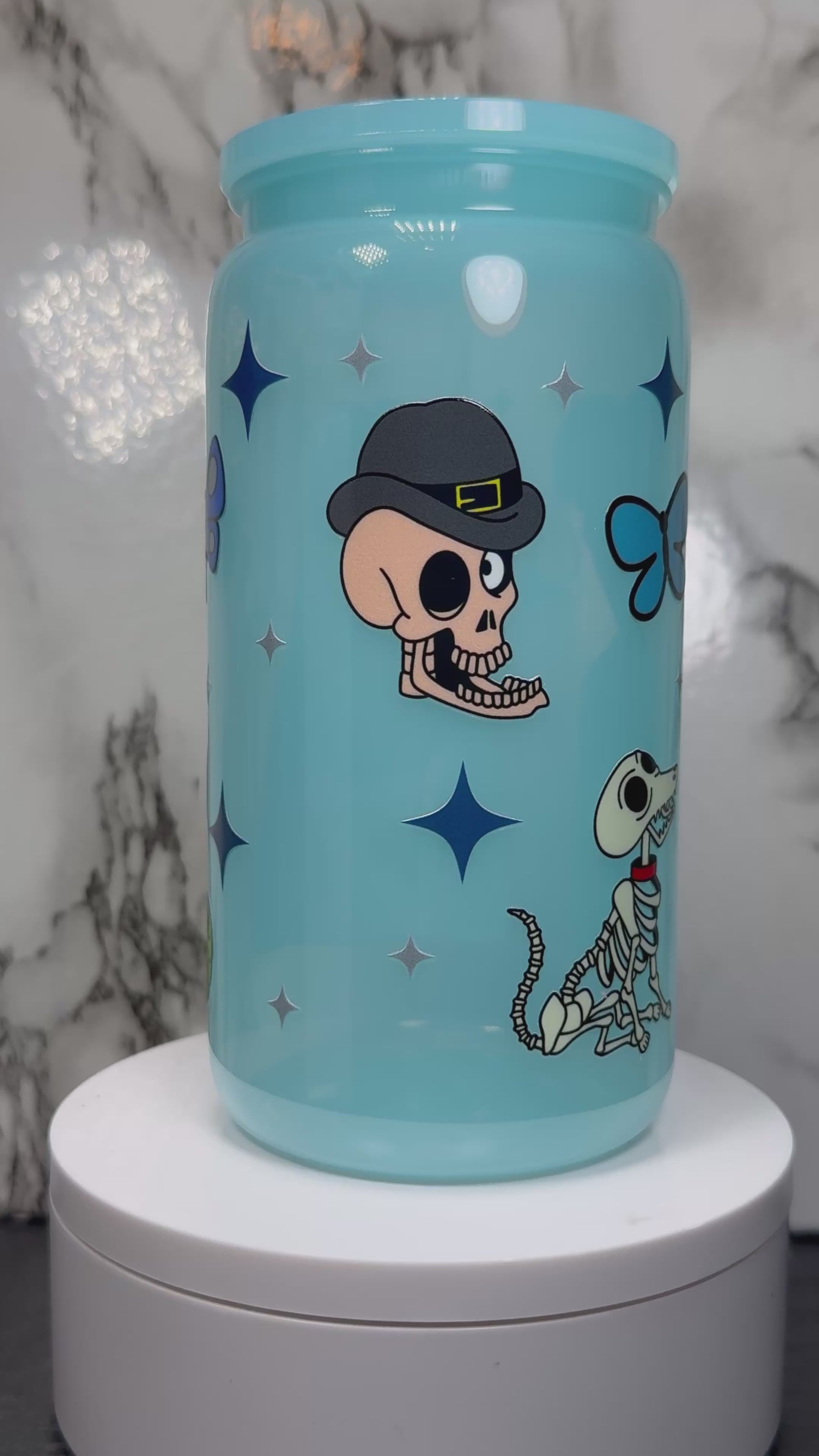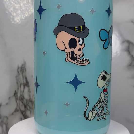 Corpse Bride UVDTF on a PLASTIC blue beer can cup