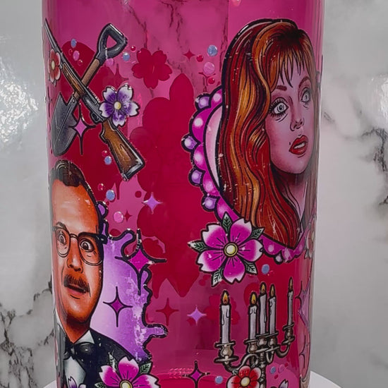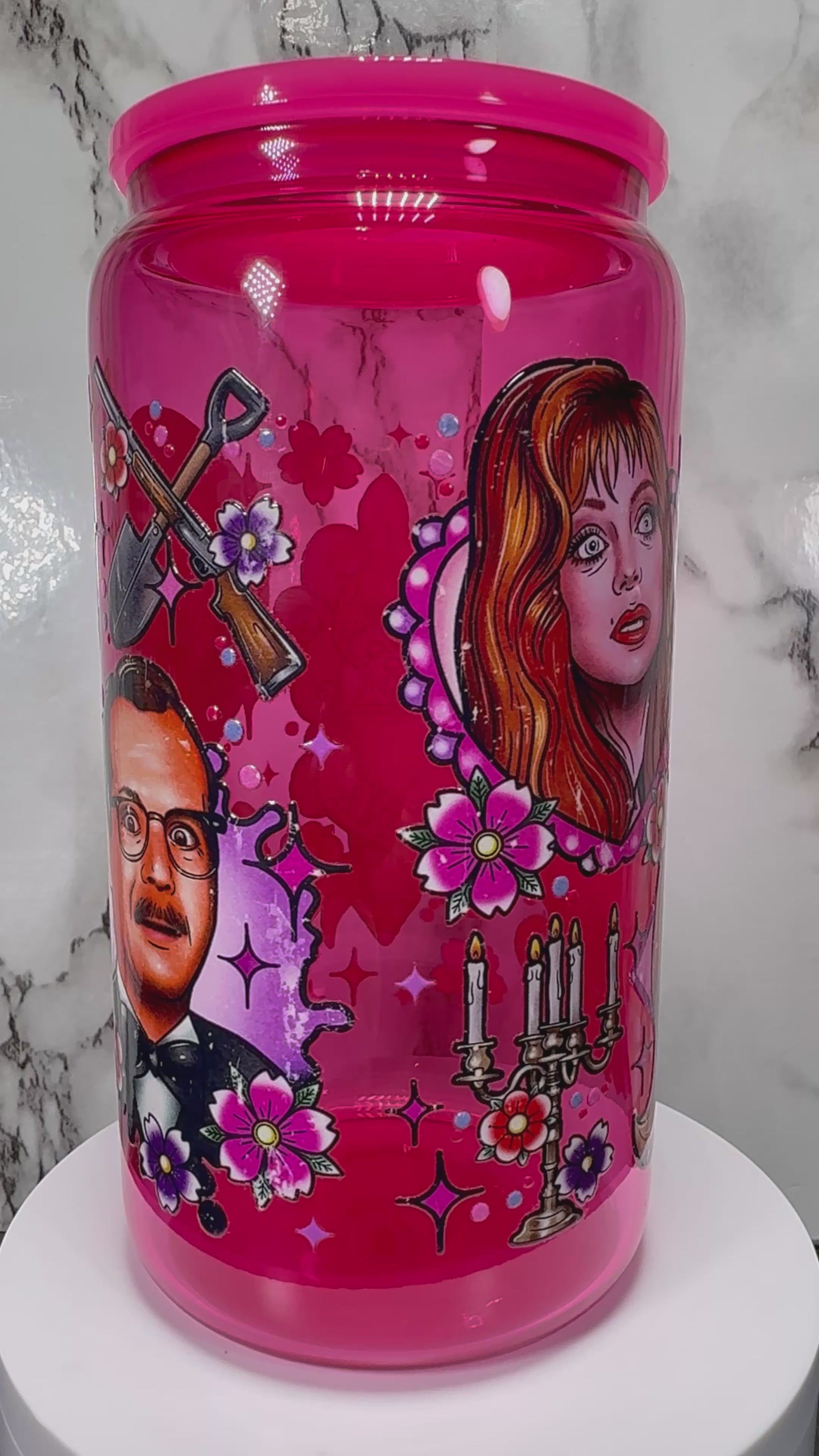 Death Becomes Her UVDTF on a hot pink beer can glass