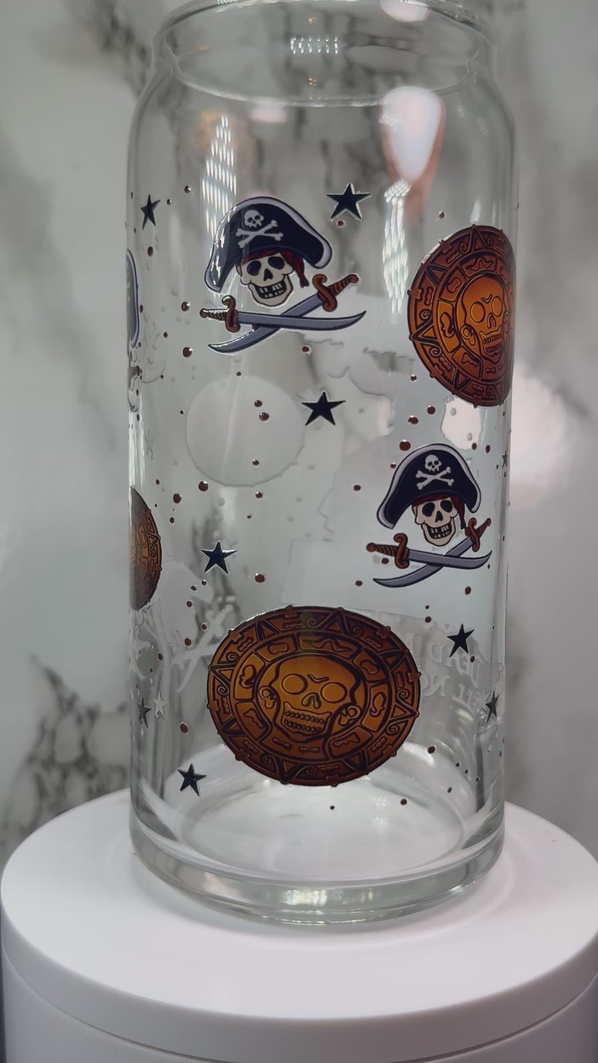 Disney Trick R Treat Sam UVDTF on a 20 ounce libbey beer can glass