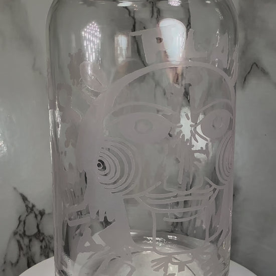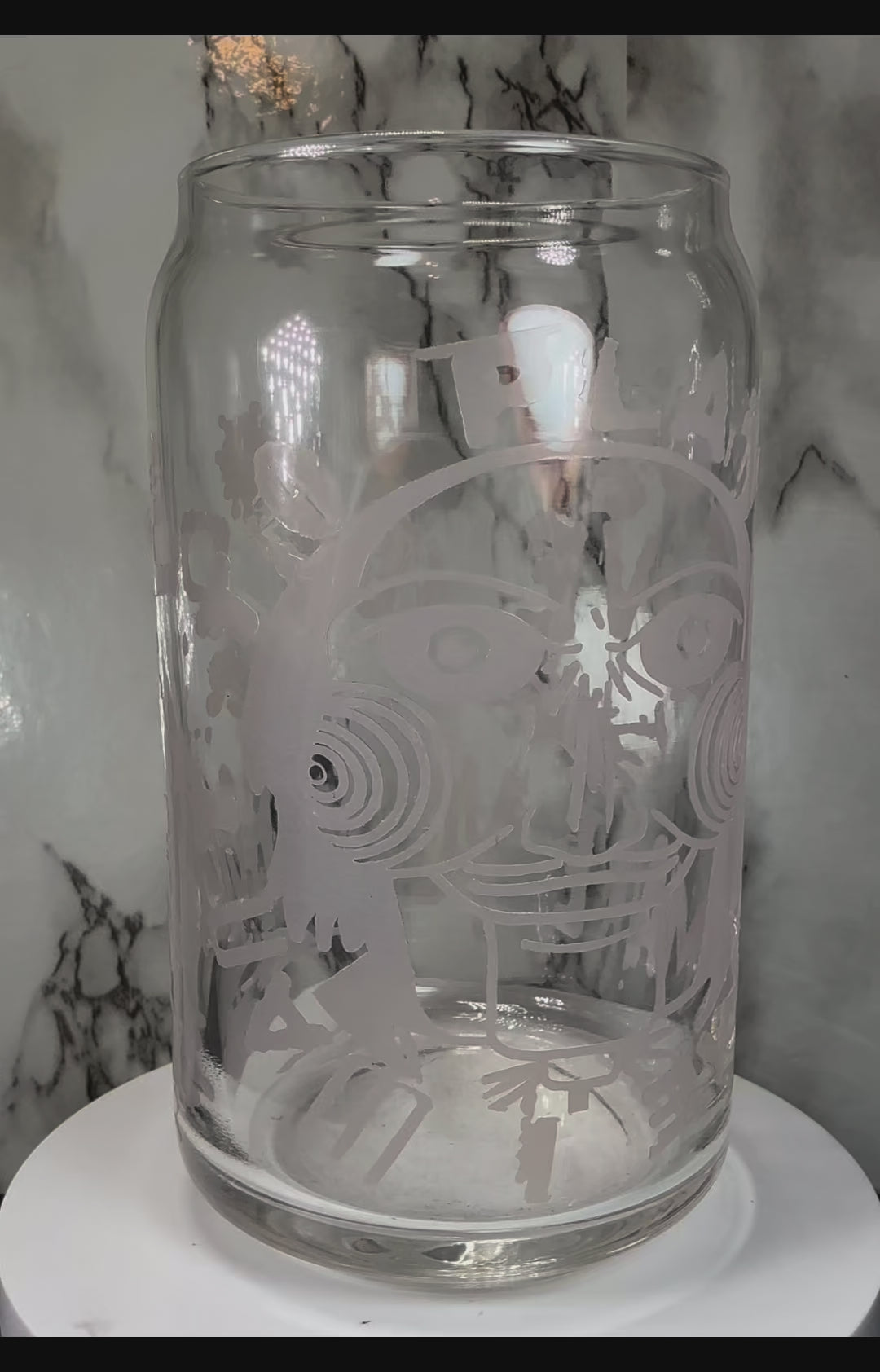Jigsaw SAW Horror color changing red permanently vinyl on a libbey beer can glass.
