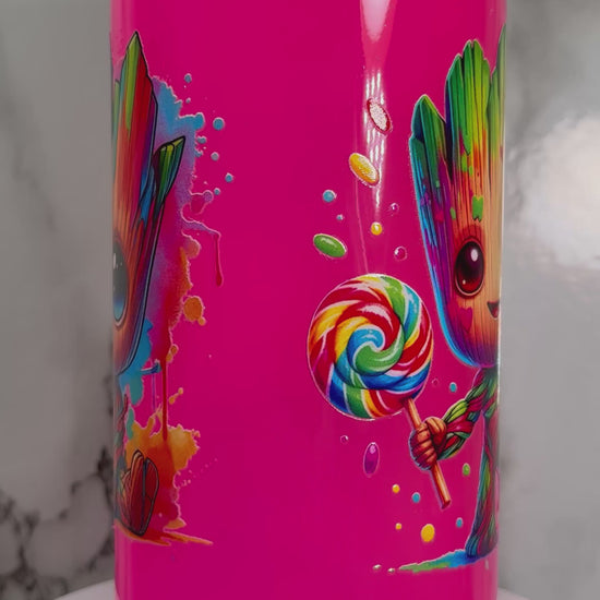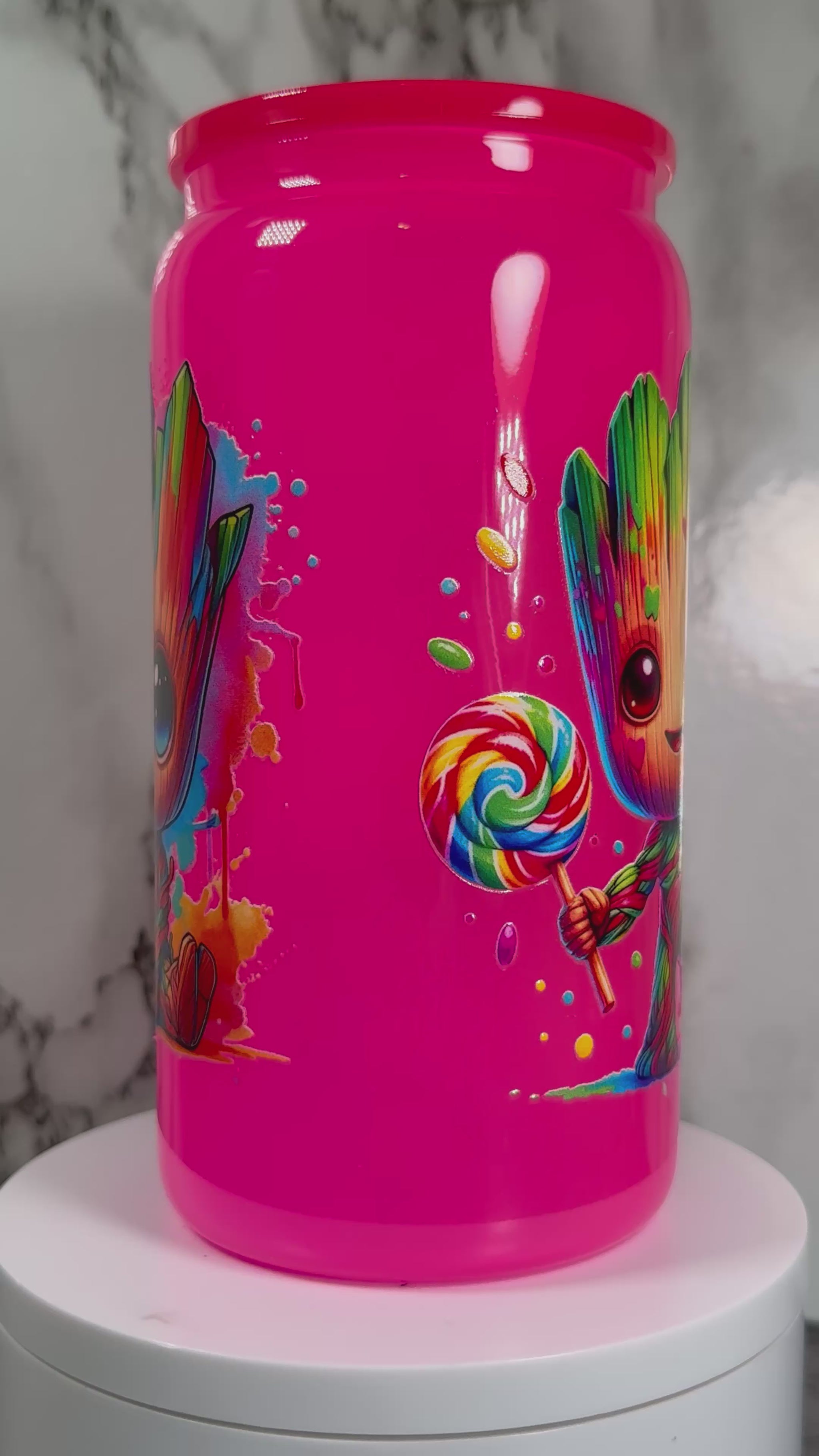 OOPSIE sale PLEASE read description!!! Baby Groot UVDTF on a hot pink beer can glass (Faults are in pictures)