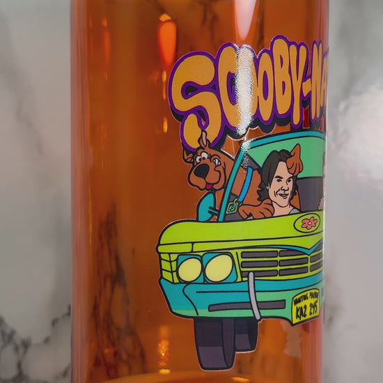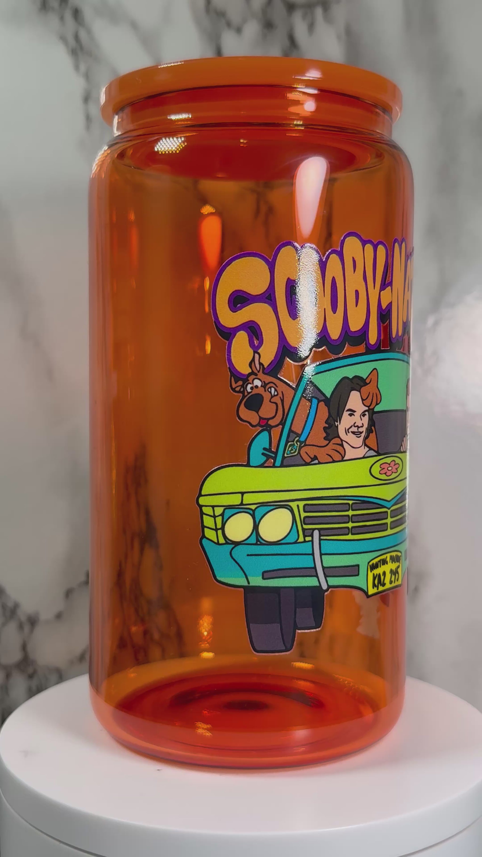 OOPSIE sale PLEASE read description!!! Supernatural Scoobynatural UVDTF on a orange beer can glass (Faults are in pictures)