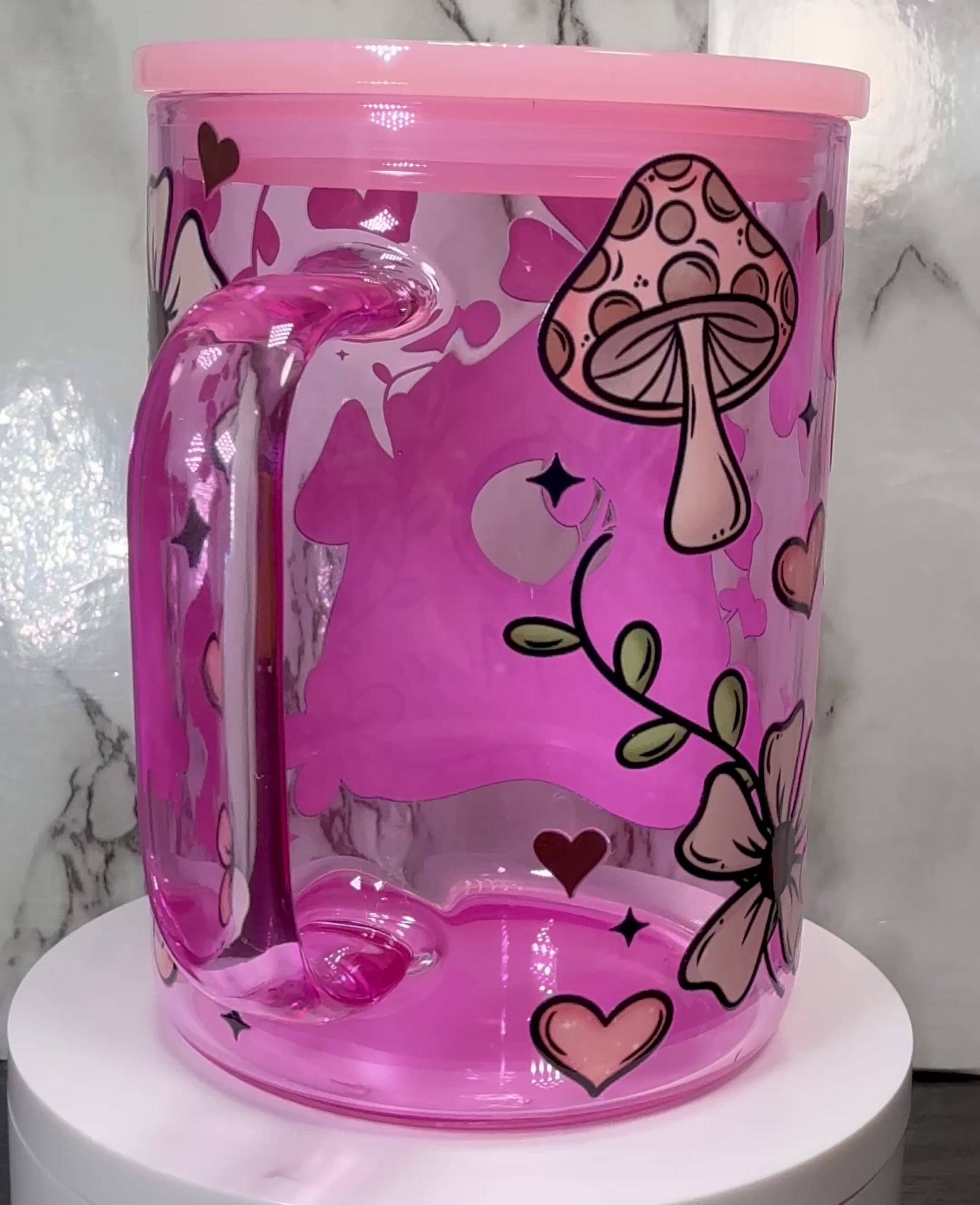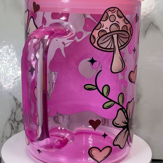 Ouija board Be Mine Valentine’s Day UVDTF on a pink coffee mug glass