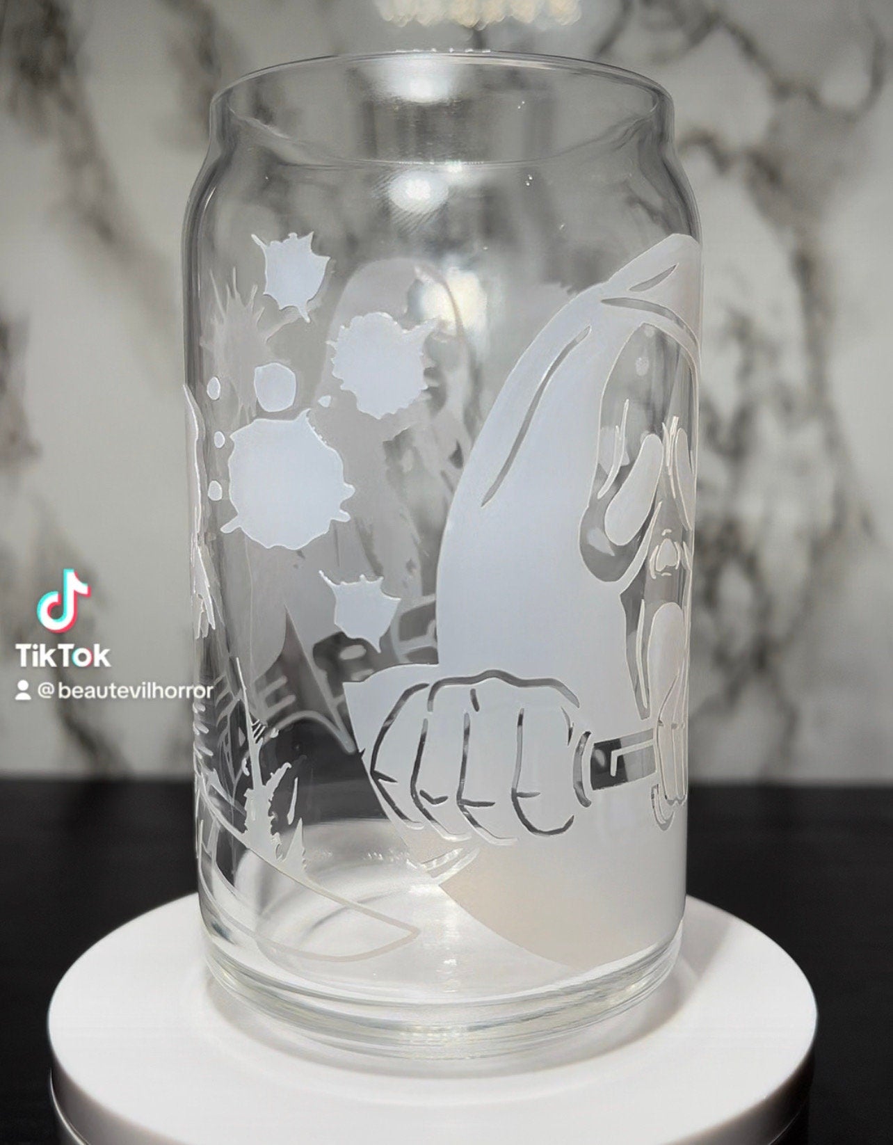 Scream Carpenter Sisters color changing red permanent vinyl on libbey beer can glass