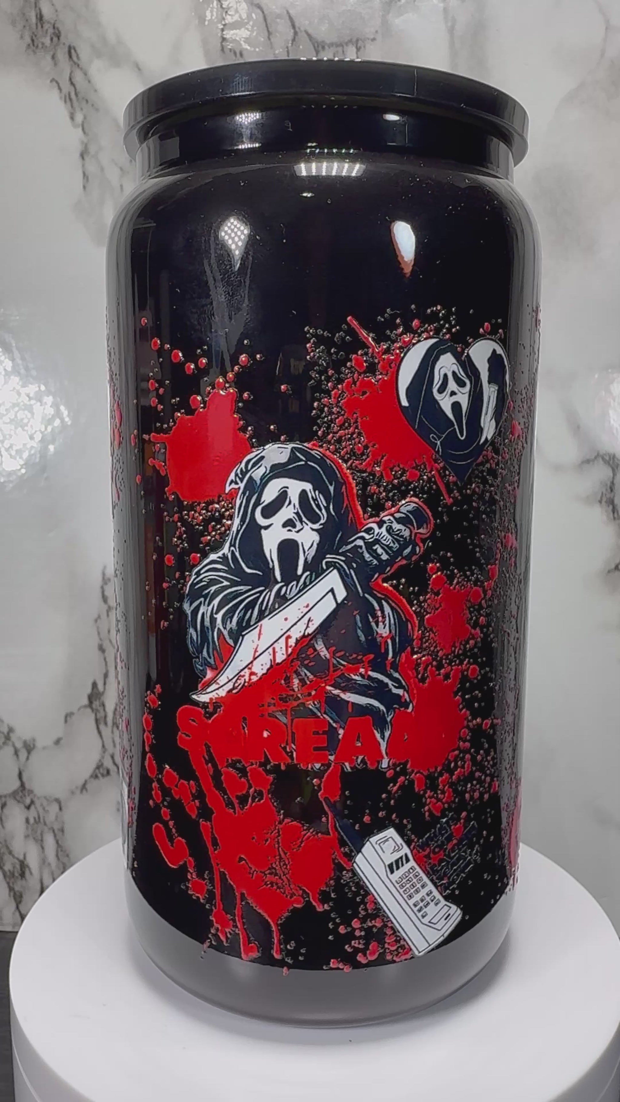Scream Cast blue on black beer can glass
