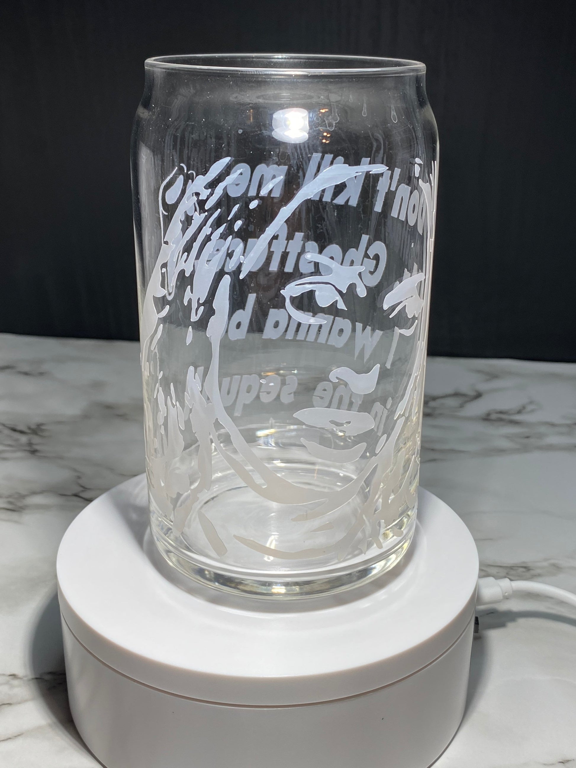 Tatum Riley from Scream cold color red changing permanent vinyl on a Libbey beer can glass