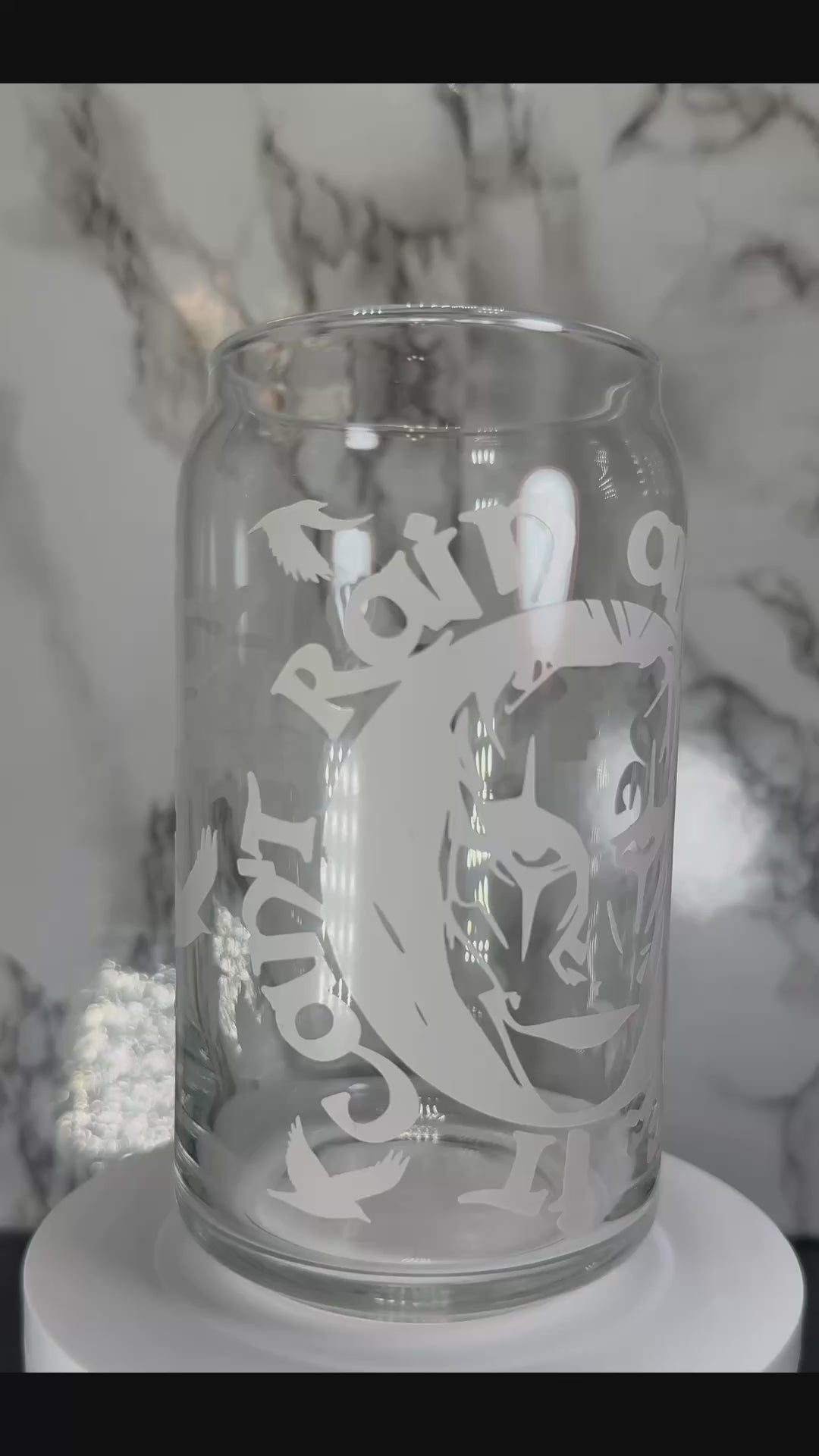 The Crow-It can’t rain all the time-Victims aren’t we all color changing permanent vinyl on a libbey beer can glass