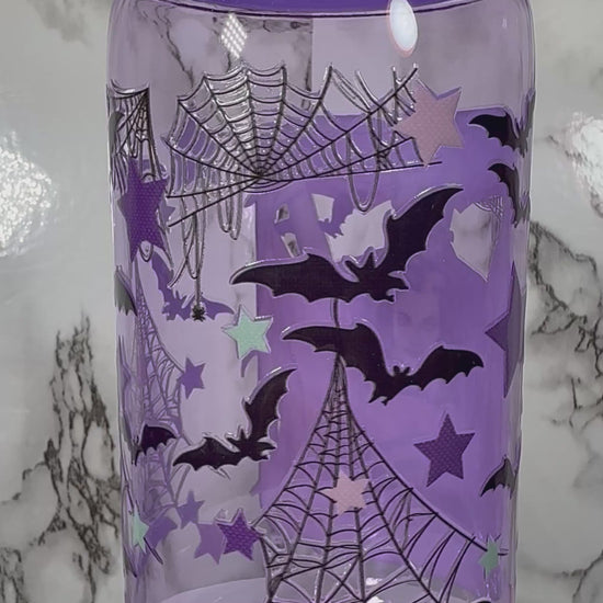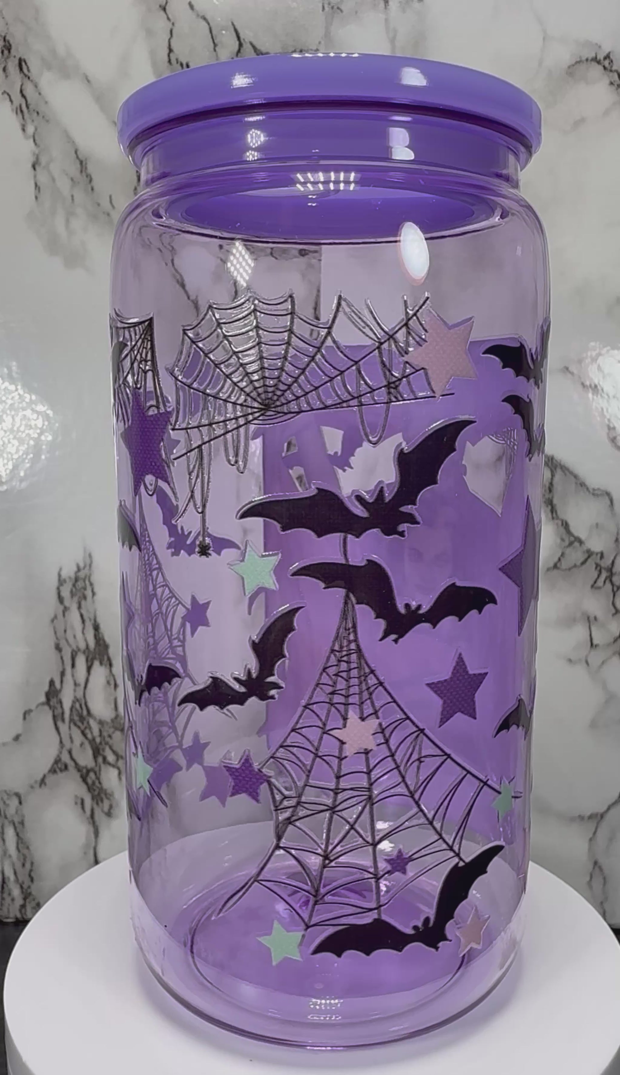 The Munsters Mom and Dad Goals UVDTF on a PLASTIC purple beer can cup