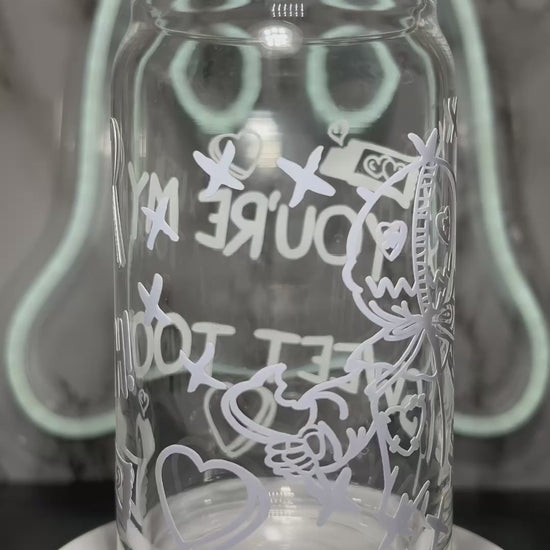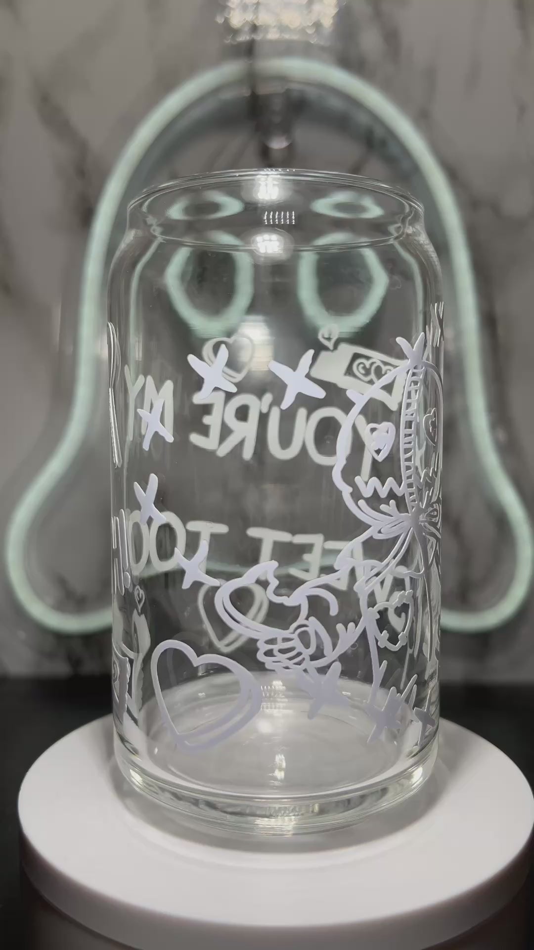 Valentine’s Day Sam Trick R Treat color changing permanent vinyl on a libbey beer can glass